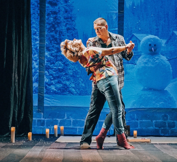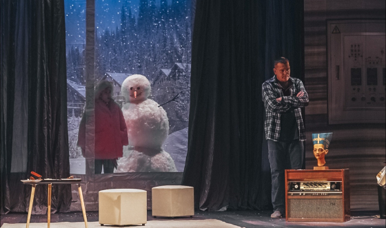 В основе спектакля «Снежный вальс» — пьеса «Плененные в снегу» современного английского драматурга Питера Куилтера, произведения которого переведены на 27 языков и поставлены более чем в 40 странах.